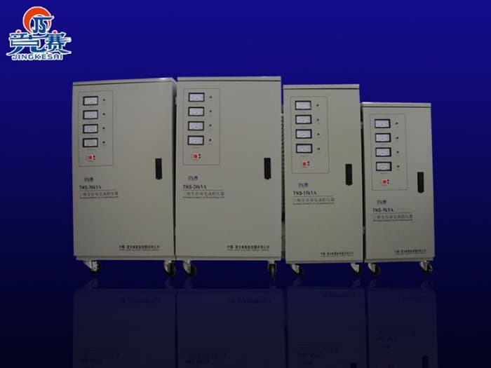 SVC(TND、TNS)系列单、三相稿精度全自动交流稳压器,其结构由接触式自耦调节器、伺服式电动机、自动控制电路等组成,当电网电压不稳定或负载变化时,自动采样控制电路发出信号驱动伺服电机,调整自耦调节器碳刷的位置,使输出电压调整到额定值并达到稳定状态。三相高精度全自动交流稳压器是SVC系列单相产品性能的组合,其输入相制分三相四线制,输出电压为线电压380V在额定电容量范围内,可同时供电源电压为三相380V用电设备使用,并设有过压保护功能。