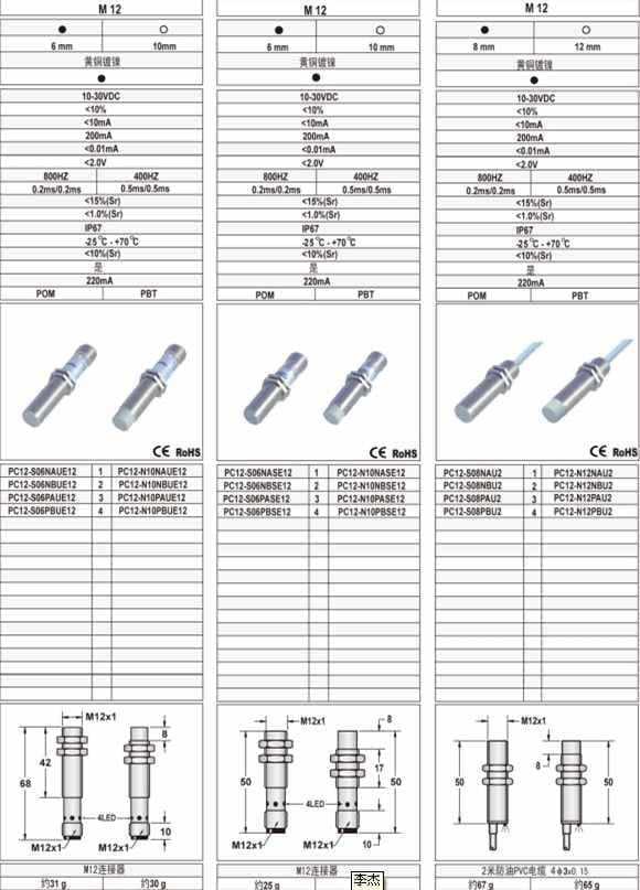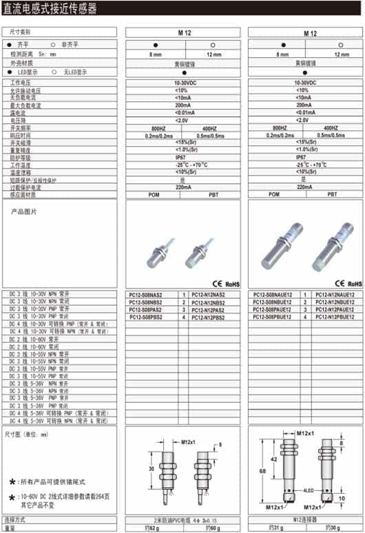 NPN-常开:PC12-S08NAUE12,PC12-S08NASE12,