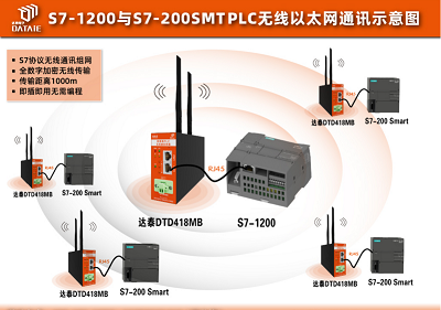 本方案以西门子S7-1200和S7-200SMART PLC为例,在S7专用协议下实现无线以太网通信实现过程。在本方案中采用了西门子PLC无线通讯终端——DTD418MB,作为实现无线通讯的硬件设备,用户无需更改程序。