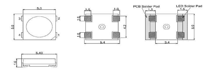 SK6812内置IC灯珠机械尺寸与引脚图(单位mm):