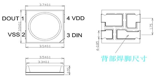 ● 控制电路与RGB芯片集成在SMD 3535元器件中,构成一个完