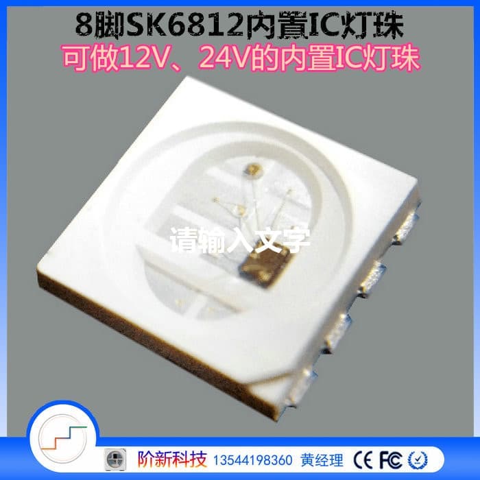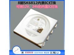 SK6812RGBP8是一个集控制电路与发光电路于一体的智能外控LED光源。其外 型与一个5050LED灯珠相同,每个元件即为一个像素点。像素点内部包含了智能数 字接口数据锁存信号整形放大驱动电路,电源稳压电路,内置恒流电路,高精度RC振荡器,输出驱动采用专利PWM技术,有效保证了像素点内光的颜色高一致性。