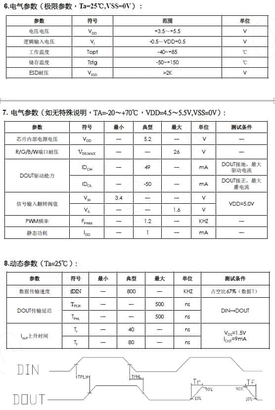 ● 内置数据整形电路,任何一个像素点收到信号后经过波形整形再输出,保证线路波形畸变不会累加。