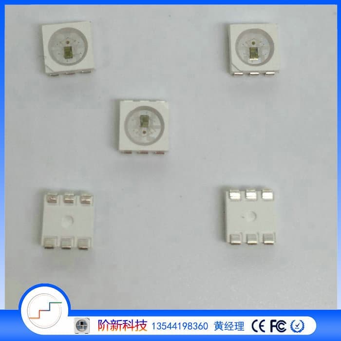 SK6822是一款串并级联控制电路与发光电路于一体的智能外控LED光源。其外型与一个5050LED灯珠相同,每个元件 即为一个像素点。像素点内部包含了智能数 字接口数据锁存信号整形放大驱动电路,电源稳压电路,内置恒流电路 ,高精度RC振荡器,输出驱动采用专利PWM技术,有效保证了像素点内光的颜色高一致性。