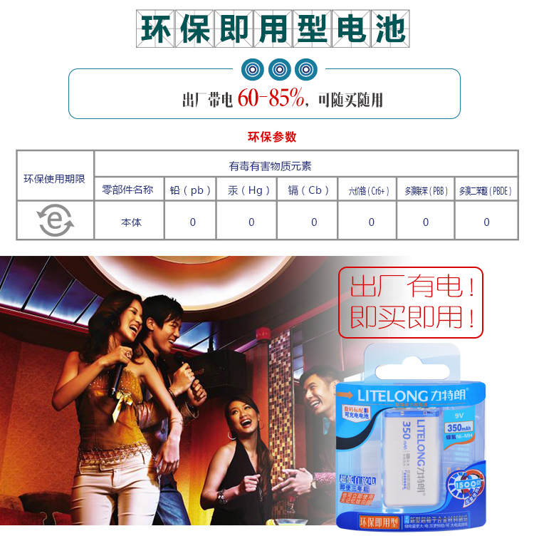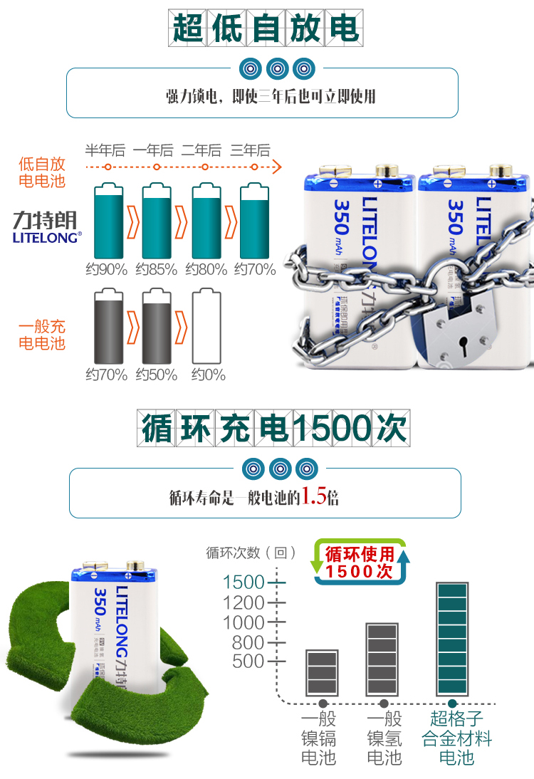 » 力特朗镍氢NI-MH 9V500mAh充电电池原装品牌特价