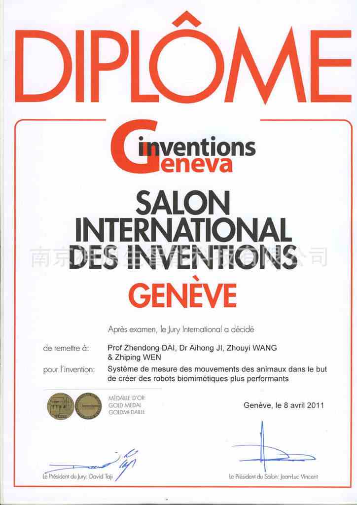 » 生物运动力学测试系统获得第39届日内瓦发明展 金奖证书