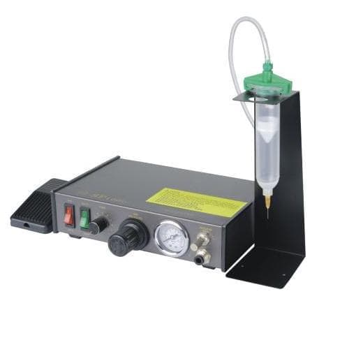 每踩一次脚踏开关,液料就会按照设定的出胶量自动从针尖孔滴出。