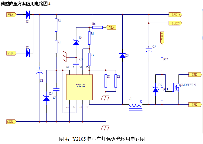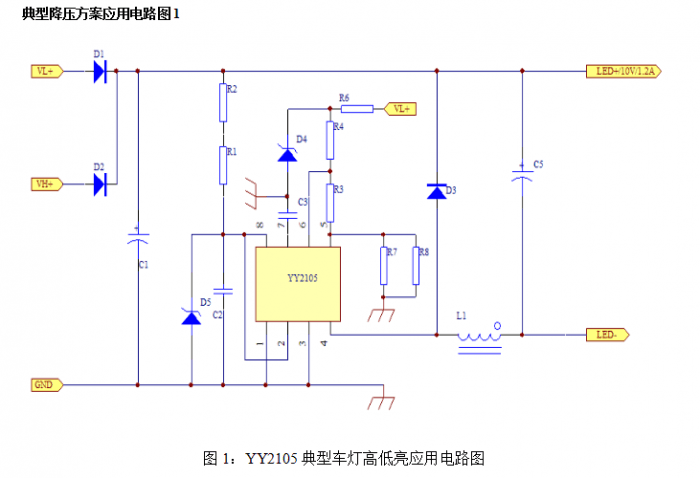 YY2105 电动车灯远近光灯切换方案;高亮低亮切换方案;线性调光方案