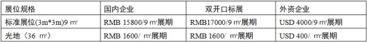 █参展细则 标准展位费用: