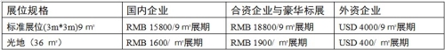◆ 》》》参展细则 标准展位费用:(注:双面开口加10%开口费)