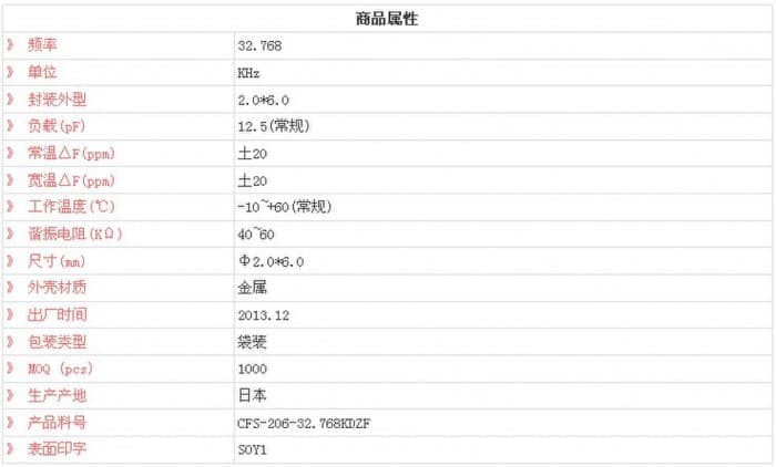 (音叉晶体谐振器>2.0*6.0圆柱系列)   商品属性: