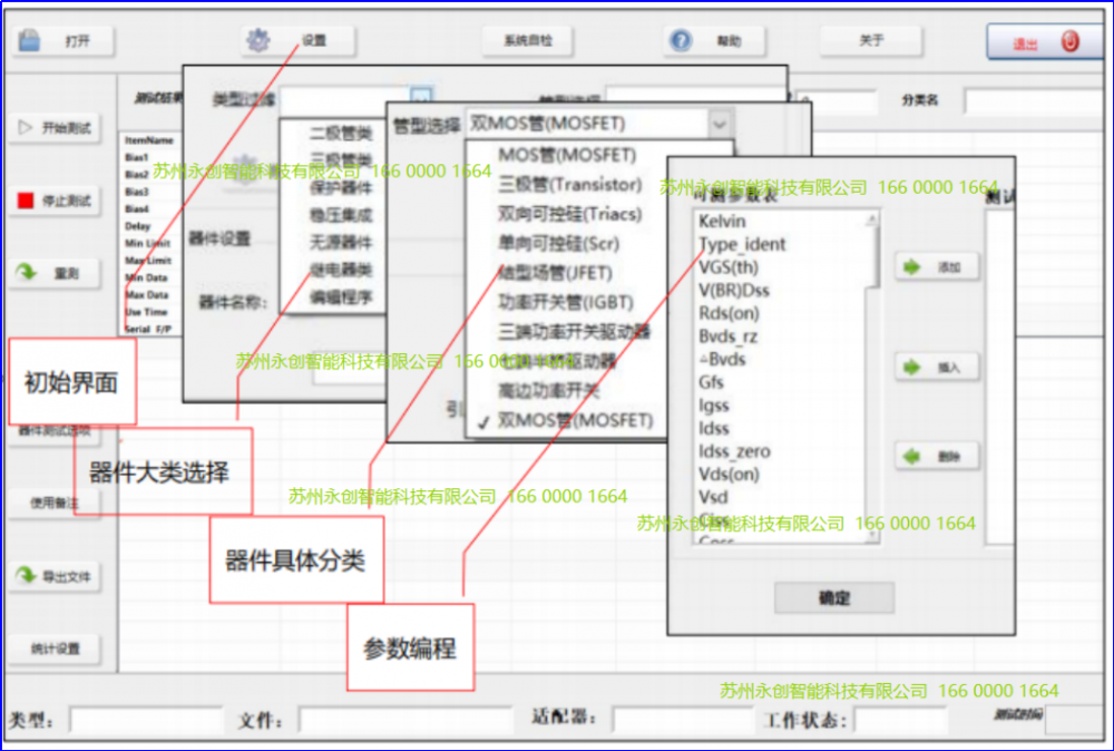 IGBT_MOS-FET静态参数测试仪系统设备STD2000X是由我公司技术团队结合半导体功率器件测试的多年经验,以及众多国内外测试系统产品的熟悉了解后,完全自主开发设计的全***“晶体管直流参数测试系统”。软件及硬件均由团队自主完成。这就决定了这款产品的功能性和可靠性能够得到持续完善和不断的提升。