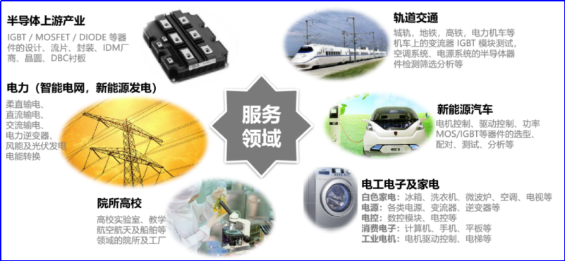 如 Si, SiC, GaN 材料的 IGBTs,Diodes,MOSFETs,HEMT,BJTs,SCRs,光耦,继电器,稳压器......