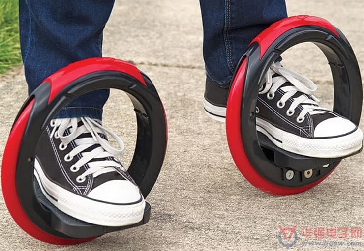 跟传统的滑板不同,Orbitwheel是一款没有板的滑板,取而代之的是两个独立的直径10英寸(25.4cm)的橡胶轮,每个轮子重5磅(约 2.3kg),里面附带了一块4英寸(10cm)宽的脚踏板。它有红色和绿色两个版本,结合了滑板和溜冰鞋的特性,变得更简单、更自由!与其说它是滑板,不如说是“环形溜冰鞋”更为贴切。