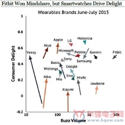2015年7月1~31日期间的可穿戴设备消费者心理市占率分析
