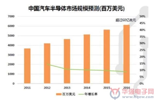 据国际汽车咨询公司IHS的统计数据显示,2015年中国汽车半导体市场规模已达到55亿美元,到2025年将翻一番,超过100亿美元。