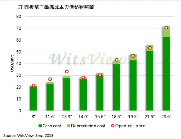 根据TrendForce旗下光电事业处WitsView*新报告显示,由于IT、液晶电视面板价格持续下跌并逐渐逼近面板厂生产现金成本,预估今年第四季面板厂营运压力将倍增。