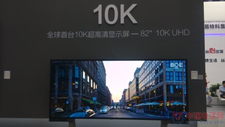 几乎每个经过京东方(BOE)的观众都会被它巨大而且高清的显示屏吸引住。实话说,这台82寸10K(分辨率为10240×4320)的液晶显示屏一下子把记者俘虏了,忍不住多拍了几张照片。据了解,这是一块TFT液晶示屏(略有遗憾),横屏宽高比为21:9,色域为90%。