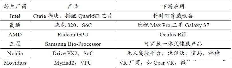 表1:主流芯片厂商及产品应用