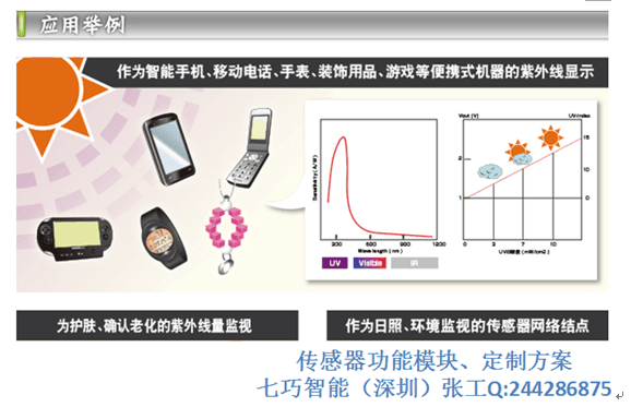 深圳七巧智能科技资深专家张工表示,该方案适合于智能手机、手表、装饰用品、游戏等便携式机器中,用于检测紫外线的强度。整体来说还是很不错的,只是面对消费电子这个对成本极其敏感的市场,尤其是中国这个对性价比要求极高的用户群体。该方案的成本偏高,性价比不占优势。
