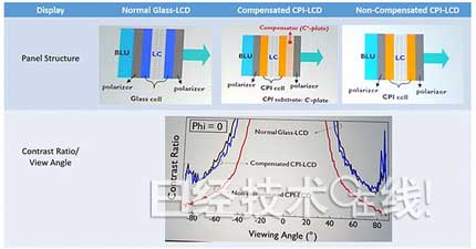图6:采用无色聚酰亚胺(CPI)的液晶显示器的光学补偿