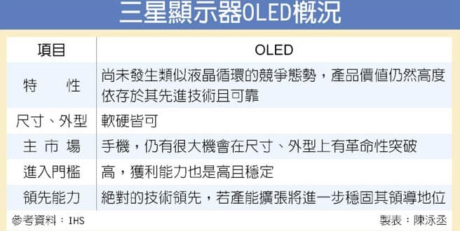 根据IHS统计,虽然今年第1季整体手机市场需求不振,但AMOLED手机面板的需求强劲,出货量攀升至8,700万片,再度刷新了历史纪录,年增63%。其中三星显示器在技术、投资、良率等各方面全面**,几乎包揽了全部的AMOLED面板订单,成为*大的受惠者。