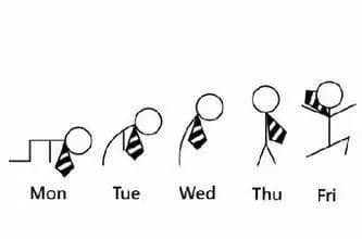 手忙脚乱是“忙Day”(Monday),熙熙攘攘“求死Day”(Tuesday),无头无尾“未死Day”(Wednesday),山穷水尽“受死Day”(Thursday),终于盼来“福来Day”(Friday)……
