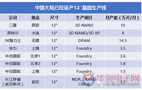 从各家厂商公布的具体信息来看,目前中国大陆已经有包括三星、英特尔、SK海力士三家国际大厂和中芯国际、华力微电子、武汉新芯(已属于长江存储子公司)三家国内厂商的8条12英寸晶圆生产线开始量产。