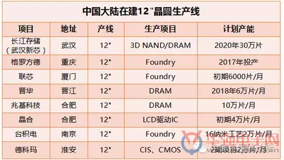 除了与中国台湾地区的晶圆代工大厂合作之外,重庆、江苏淮安等地分别与格罗方德和德科玛达成合作,也将升级改建或新建12英寸晶圆生产线。