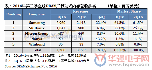 DRAMeXchange研究协理吴雅婷表示,第三季有苹果iPhone 7与三星Note 7旗舰机型发布,让全球行动式内存出货大增,纵使Note 7受爆炸影响于第四季宣布停产,先前的备料动作已为第三季行动式内存的营收做出贡献。