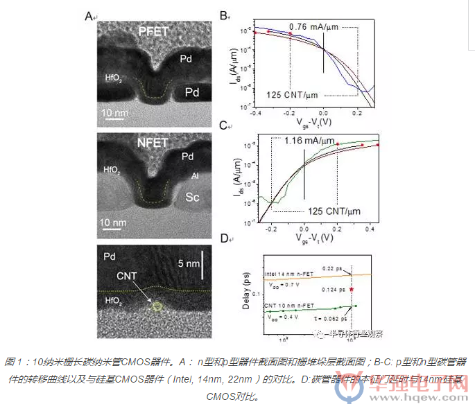 理论研究表明碳管器件相对于硅基器件来说具有5-10倍的速度和功耗优势,有望满足后摩尔时代集成电路的发展需求。但是已实现的*小碳纳米管CMOS器件仅停滞在20nm栅长(2014年 IBM),而且性能远远低于预期。