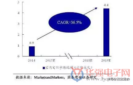 强劲的市场需求为室内定位技术(IPS)提供了广阔的发展空间。根据市场调研公司MarketsandMarkets的数据,室内定位技术的市场规模已于2014年达到9亿美元,并预计将于5年内增至44亿美元,复合年增长率高达36.5%。Research and Markets的估计更为乐观,预计2013~2018年的复合年增长率将达48.4%。科技行业咨询公司IDTechEx则认为,2024年以前,室内定位的总市场规模将超过100亿美元。