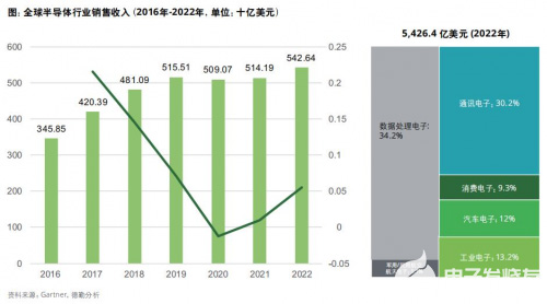 在过去几年,全球半导体行业增长主要依赖智能手机等电子设备的需求,以及物联网、云计算等技术应用的扩增。根据数据预计全球半导体行业增长态势有望持续至下一个十年,主要市场驱动力量包括现有产品的持续强化、人工智能产品和5G网络等新兴技术的融合、汽车和工业电子行业的迅速增长。半导体行业的大部分收入将来自于数据处理类电子(如存储和云计算)以及通讯电子(如无线通讯)。汽车电子和工业电子将成为半导体行业增长较迅速的两大领域。