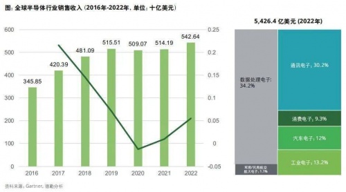 在过去几年,全球半导体行业增长主要依赖智能手机等电子设备的需求,以及物联网、云计算等技术应用的扩增。根据数据预计全球半导体行业增长态势有望持续至下一个十年,主要市场驱动力量包括现有产品的持续强化、人工智能产品和5G网络等新兴技术的融合、汽车和工业电子行业的迅速增长。半导体行业的大部分收入将来自于数据处理类电子(如存储和云计算)以及通讯电子(如无线通讯)。汽车电子和工业电子将成为半导体行业增长较迅速的两大领域。