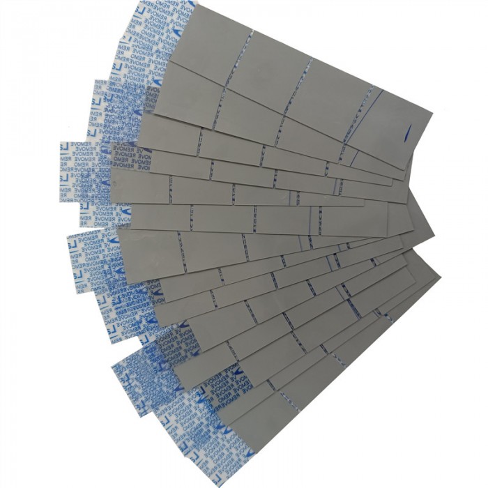 莱尔德相变化导热材料本身为灰色,成品尺寸可根据客户要求来模切。材料两面都有保护膜,。材料导热系数为:5.4W,