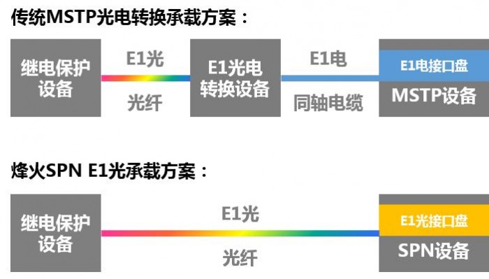 继电保护业务对于电网的发、输、变、配及重要用电设备的稳定安全运行至关重要,但是传统继保业务传输时需经过光电转换设备,将E1光信号转换为E1电信号与MSTP设备对接,光电转换的过程需要额外采购光电转换设备,且会导致继保业务因为分段的光纤、电缆转接过程增加故障发生率。烽火通信SPN设备在满足电力通信网超低时延、海量连接、安全可靠、绿色低碳、智能控制五个维度智能电力通信网需求的同时,还开发了8路光口的E1光接口盘,为继电保护业务承载贡献三大价值:
