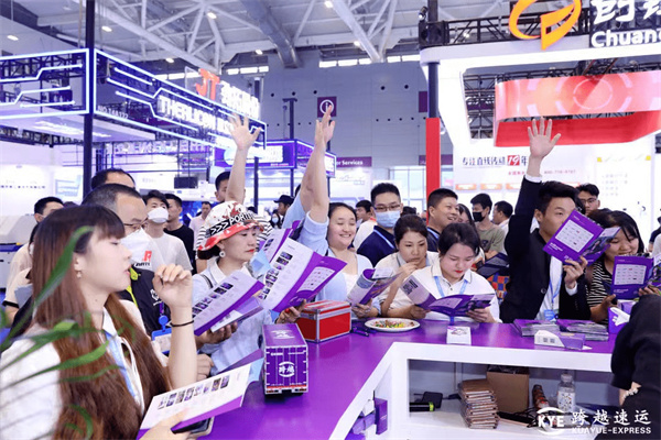 主营“限时速运”服务的跨越速运携拳头产品与核心技术参展,兼具视觉冲击感与互动体验感的展位陈列设计,加之自由灵动的紫色调让跨越速运展台在现场独树一帜,收获了较高人气。