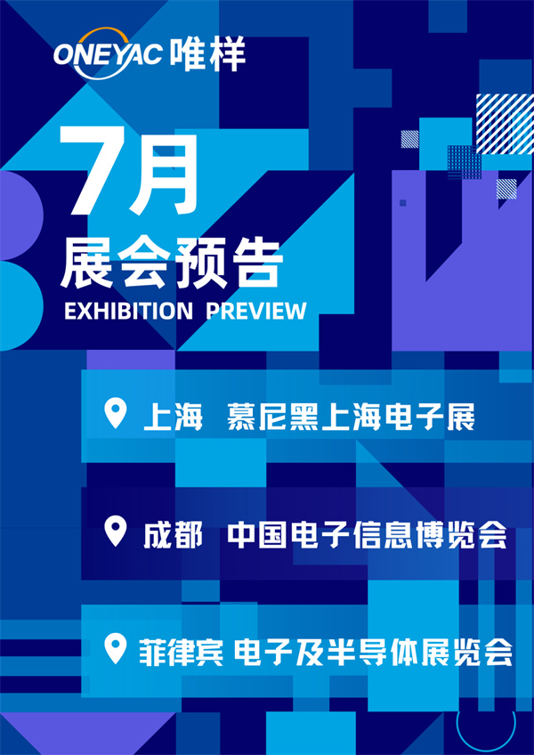 7月8日-10日,7月17日-19日,7月24-26日,欢迎广大采购工程师们莅临上海、成都、菲律宾唯样展台,一览唯样带来的原厂产品和解决方案!
