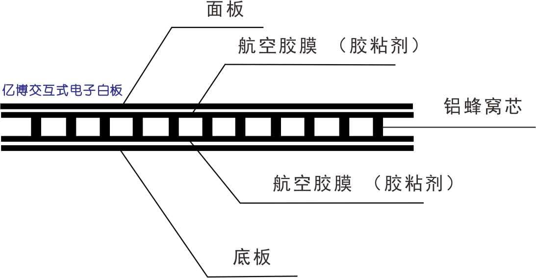 亿博电子白板航空蜂窝夹层结构板是采用蜂窝芯材与各种材料的面板,经专用结构胶粘剂粘接而成的一种复合材料板,具有质量轻、强度高、刚性好的特点。