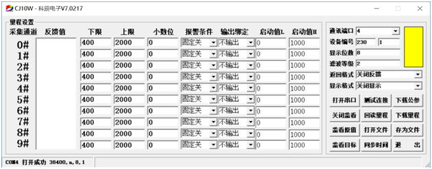 3、 采集器的每路独立设置量程、独立设置校正参数、独立设置超限报警条件,参数##保存。