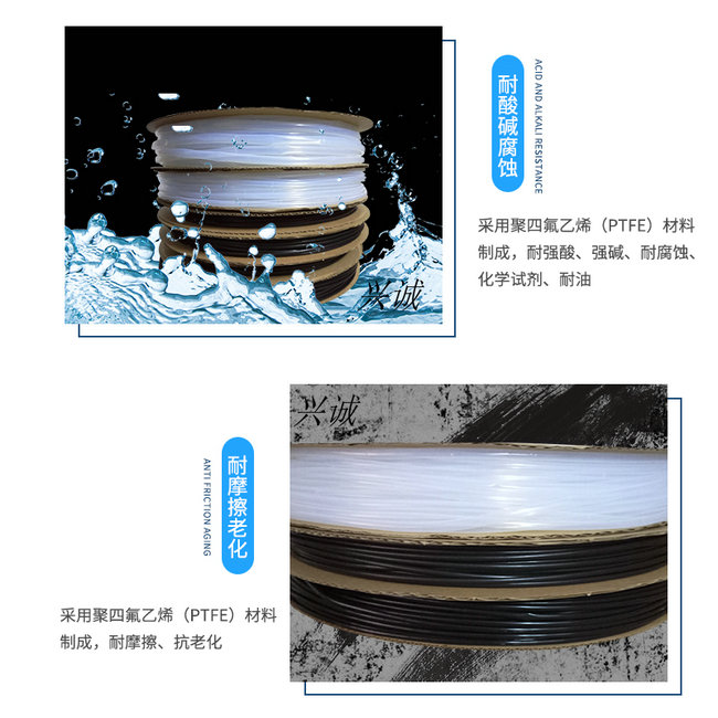 聚四氟乙烯管。能在-65℃-+260℃温度下使用,在 已知的塑性材料中,它具有###摩擦系数,##的耐腐蚀性能。##的耐温性能。 铁氟龙套管是用进口优质聚四氟乙烯树脂挤压烧结而成。该产品具有耐高温(175℃- 260℃)、耐腐蚀、耐磨等优点。 铁氟龙绝缘套管具备优良的电气特性及耐温抗粘,抗腐蚀,可广范应用于:电气绝缘,理化仪器,电子通讯,航太,汽车,医疗,电热等工业,机械,电子电器,汽车,航天,化工,通讯等各种领域。