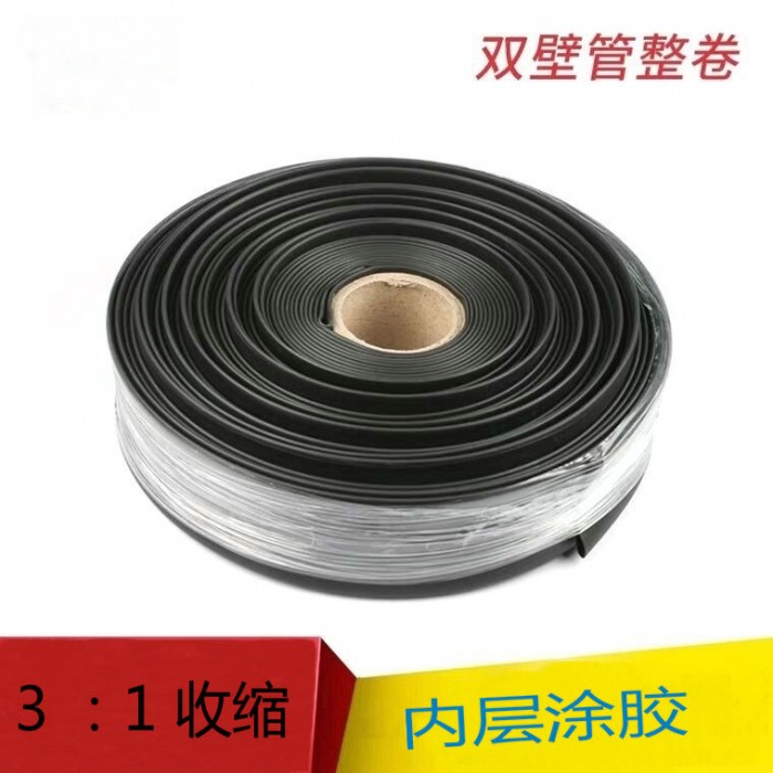 DW(3:1, 4:1,)双壁含胶热收缩套管由辐射交联聚烯烃材料和热熔胶双层构成,外层聚烯烃绝缘、阻燃、理化电气性能优异,内层热熔胶能缓冲机械应变和密封性强。主要功能是绝缘、密封、防水、防腐、防漏气等,广泛应用于各类线束、电线电缆和金属管棒等的密封绝缘、防水防腐等领域。其收缩倍率达3-5倍,收缩后热溶胶能将连接两端的材料完全密封,易施工、不需保养,能耐恶劣环境、湿气等冲击,达到保护零组件作用,应用于线缆接续、线缆和无器件的密封防潮、防水、防蚀和绝缘保护,修复受损的线缆绝缘层等。