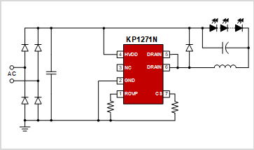 KP1271N 集成有完备的保护功能以保障系统安全可靠的运行,如:逐周期电流限制 (OCP)、过热保护 (OTP)、输入过压保护、输出过压保护 (OVP)、LED 开路和短路保护等。