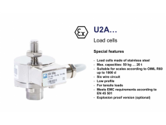 - 量程 :50,100,200,500 kg ;1,2,5,10,20 T ;- 精度:0.1 %(0.2%),D1 OIML ;- 用途:建材秤,行车秤,包装秤,配料秤 …;耐腐不锈钢壳体。
