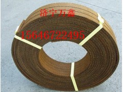 石棉及无石棉橡胶铜丝制动带 规格:(4-40)×(30-400)mm 产品性能:具有弹性好、韧性大、抗冲击、强度高、耐磨且对偶吻合性好、制动灵敏等优点。无石棉橡胶铜丝制动带除了具有石棉制动带的优点外,还具有对人体无危害、对环境无污染的特性。可根据客户要求定制。标准长度为10M,15M,20M;厚度:5-30mm,宽度≤500mm。