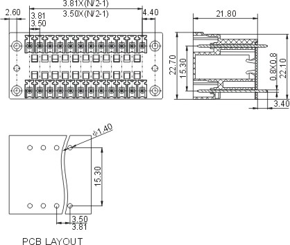 双层公座连接器环保弯针15EDGRMH-3.81