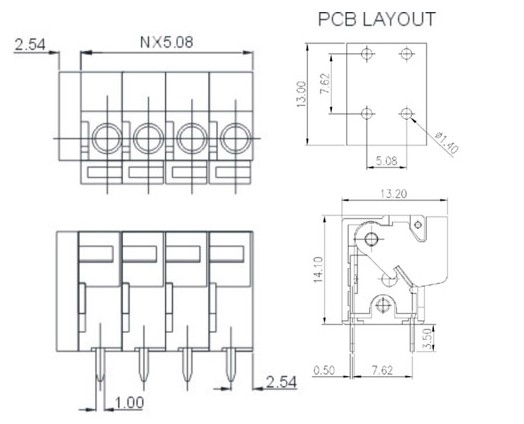 该产品获得UL,CE,CQC,ROHS等认证,颜色定制,有5.08及2.54mm间距2种规格,同时具有弯针和直针2种规格,以下介绍5.08mm间距直针产品规格