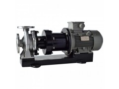 佰诺磁力传动离心泵(简称磁力泵)通常由电动机、磁力偶合器和耐腐蚀离心泵组成。参照API685规范设计,产品为卧式、单级、单吸、径向剖分蜗壳式离心泵。泵体采用底脚线支撑,轴向吸入、径向排出、后开门结构。根据磁学原理,当电机带动外磁转子旋转时,##磁场能穿透空气隙和非磁性材质,带动与叶轮相连的内磁转子作同步旋转,实现动力的无接触传递,将动密封转化为静密封,从而彻底解决了“跑、冒、滴、漏”问题,特别适宜易燃易爆、有毒、腐蚀性、易汽化挥发介质的输送,具有安全环保及节能的优点。