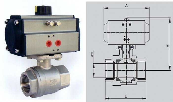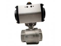 气动内螺纹(对焊)球阀是由双(单)作用气动活塞式执行器和内螺纹球阀组成。其阀体可分为整体式、二段式、三段式。阀座采用弹性密封结构,密封可靠,启闭轻松。阀杆采用有倒密封的下装式结构,阀腔异常升压时,阀杆不会被冲击。气动活塞式执行器采用低摩擦材料做成轴承套,缸体内外表面经硬质阳极氧化防腐处理,大大提高了气缸的使用寿命。本产品使用性能稳定,广泛的用于石化、冶金、电力、轻工等工业部门。工作原理