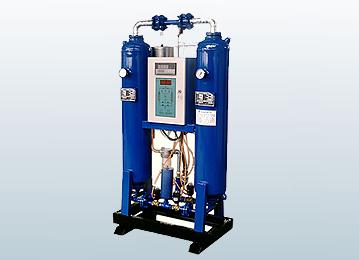 微热再生干燥机按“变温吸附”(TSA)原理进行吸附剂再生,再生条件比无热再生干燥机优越。加热能脱附吸附剂内表面的水蒸气,使吸附剂实现深层吸附,因此有热再生干燥机中吸附剂的动态吸附量远远比无热再生干燥机中的吸附剂动态吸附量大。